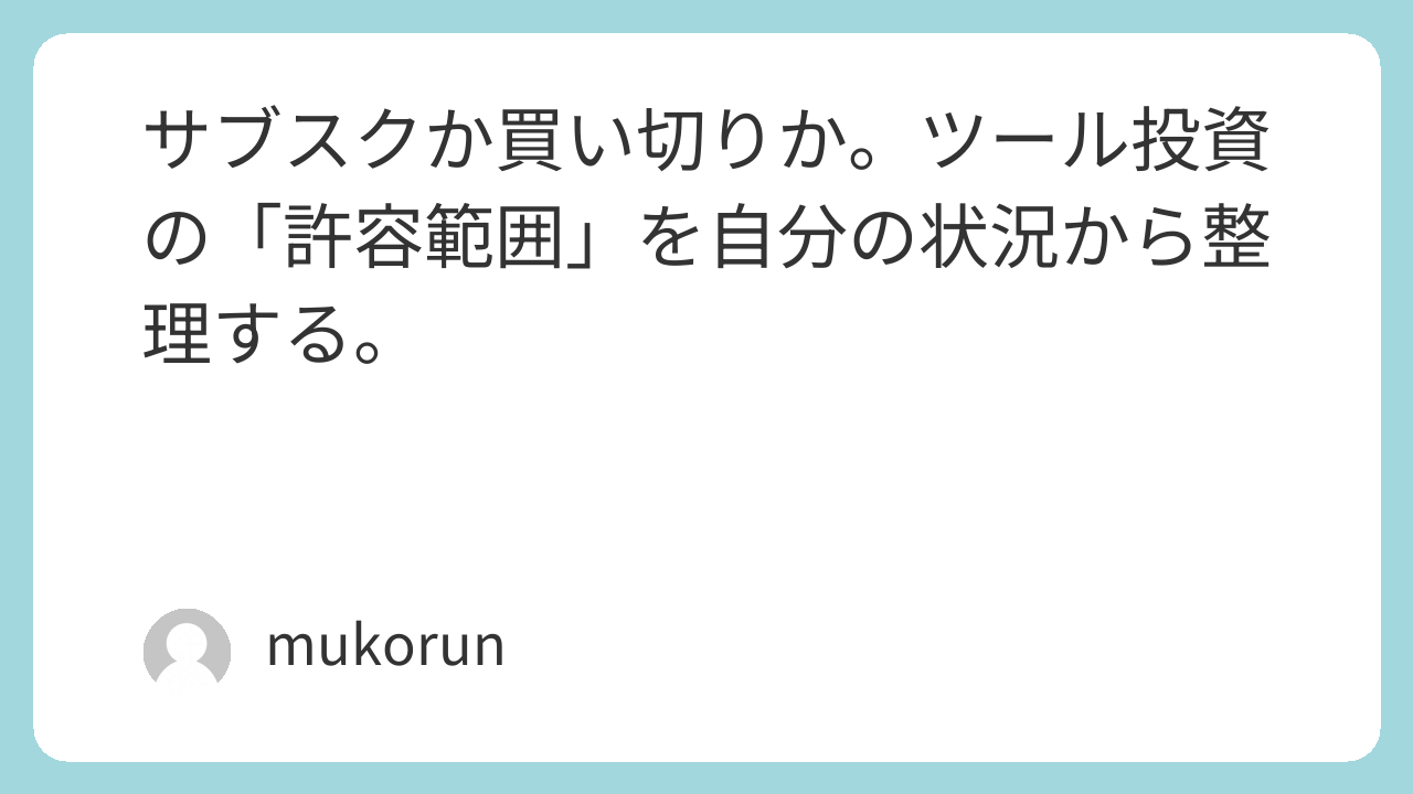 将来、私の収益がもっと安定し、より高度な効率を求めるようになった時は、その時にまた最適なサブスクツールへの移行を検討すればいい。そう考えています。